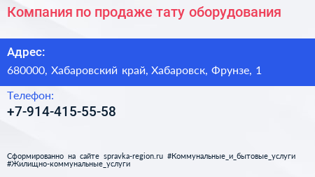 Компания по продаже тату-оборудования по адресу 680000, Хабаровский край, Хабаровск, Фрунзе, 1 в дальнейшем Организация, размещена в следующих категориях: