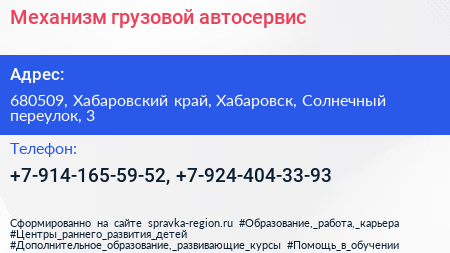 Механизм, грузовой автосервис по адресу 680509, Хабаровский край, Хабаровск, Солнечный переулок, 3 в дальнейшем Организация, размещена в следующих категориях: