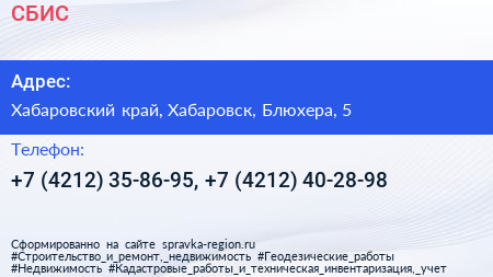 СБИС по адресу Хабаровский край, Хабаровск, Блюхера, 5 в дальнейшем Организация, размещена в следующих категориях: