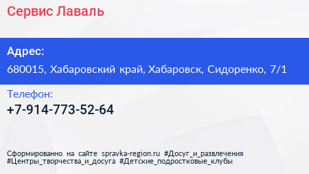 Сервис-Лаваль по адресу 680015, Хабаровский край, Хабаровск, Сидоренко, 7/1 в дальнейшем Организация, размещена в следующих категориях: