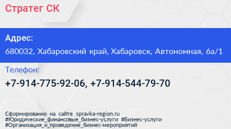Стратег СК по адресу 680032, Хабаровский край, Хабаровск, Автономная, 6а/1 в дальнейшем Организация, размещена в следующих категориях: