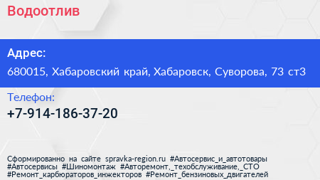 Водоотлив+ по адресу 680015, Хабаровский край, Хабаровск, Суворова, 73 ст3 в дальнейшем Организация, размещена в следующих категориях: