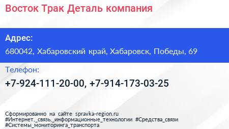 Восток Трак Деталь, компания по адресу 680042, Хабаровский край, Хабаровск, Победы, 69 в дальнейшем Организация, размещена в следующих категориях: