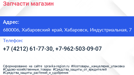 Запчасти, магазин по адресу 680006, Хабаровский край, Хабаровск, Индустриальная, 7 в дальнейшем Организация, размещена в следующих категориях: