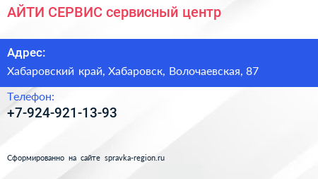 АЙТИ-СЕРВИС, сервисный центр по адресу Хабаровский край, Хабаровск, Волочаевская, 87 в дальнейшем Организация, размещена в следующих категориях: