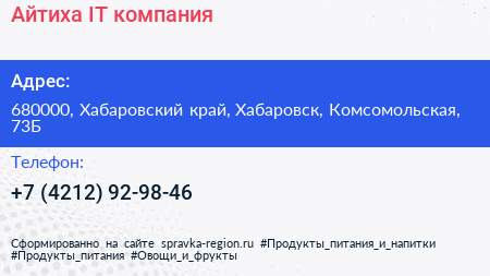 Айтиха, IT-компания по адресу 680000, Хабаровский край, Хабаровск, Комсомольская, 73Б в дальнейшем Организация, размещена в следующих категориях: