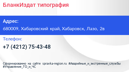 БланкИздат, типография по адресу 680009, Хабаровский край, Хабаровск, Лазо, 2в в дальнейшем Организация, размещена в следующих категориях: