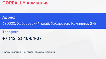 GOREALLY, компания по адресу 680000, Хабаровский край, Хабаровск, Калинина, 27Б в дальнейшем Организация, размещена в следующих категориях: