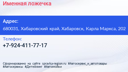 Именная ложечка по адресу 680031, Хабаровский край, Хабаровск, Карла Маркса, 202 в дальнейшем Организация, размещена в следующих категориях:
