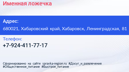 Именная ложечка по адресу 680021, Хабаровский край, Хабаровск, Ленинградская, 81 в дальнейшем Организация, размещена в следующих категориях: