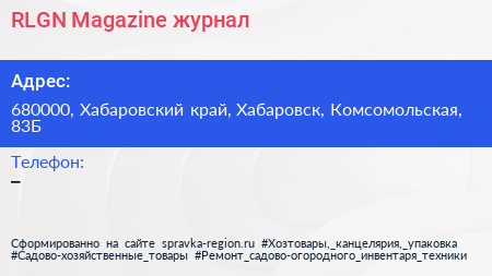 #RLGN Magazine, журнал по адресу 680000, Хабаровский край, Хабаровск, Комсомольская, 83Б в дальнейшем Организация, размещена в следующих категориях: