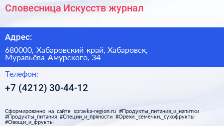 Словесница Искусств, журнал по адресу 680000, Хабаровский край, Хабаровск, Муравьёва-Амурского, 34 в дальнейшем Организация, размещена в следующих категориях: