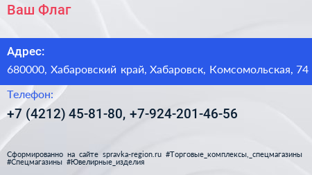 Ваш Флаг по адресу 680000, Хабаровский край, Хабаровск, Комсомольская, 74 в дальнейшем Организация, размещена в следующих категориях:
