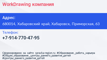 WorkDrawing, компания по адресу 680014, Хабаровский край, Хабаровск, Приморская, 63 в дальнейшем Организация, размещена в следующих категориях: