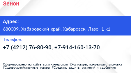 Зенон по адресу 680009, Хабаровский край, Хабаровск, Лазо, 1 к1 в дальнейшем Организация, размещена в следующих категориях: