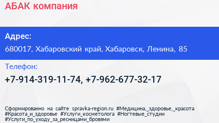 АБАК, компания по адресу 680017, Хабаровский край, Хабаровск, Ленина, 85 в дальнейшем Организация, размещена в следующих категориях: