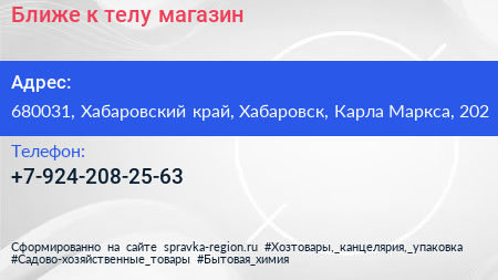 Ближе к телу, магазин по адресу 680031, Хабаровский край, Хабаровск, Карла Маркса, 202 в дальнейшем Организация, размещена в следующих категориях: