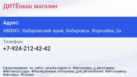 ДИТЁныш, магазин по адресу 680045, Хабаровский край, Хабаровск, Королёва, 2а в дальнейшем Организация, размещена в следующих категориях: