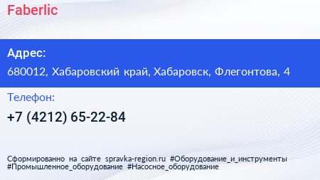 Faberlic по адресу 680012, Хабаровский край, Хабаровск, Флегонтова, 4 в дальнейшем Организация, размещена в следующих категориях: