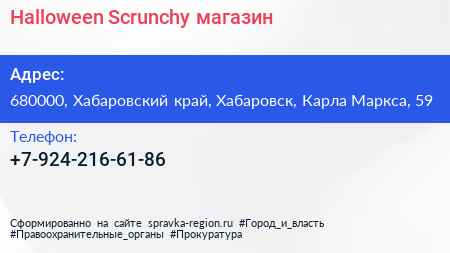 Halloween Scrunchy, магазин по адресу 680000, Хабаровский край, Хабаровск, Карла Маркса, 59 в дальнейшем Организация, размещена в следующих категориях: