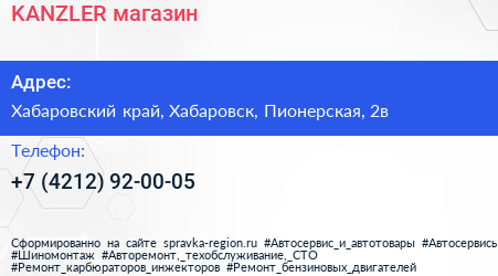 KANZLER, магазин по адресу Хабаровский край, Хабаровск, Пионерская, 2в в дальнейшем Организация, размещена в следующих категориях: