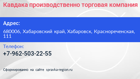Кавдака, производственно-торговая компания по адресу 680006, Хабаровский край, Хабаровск, Краснореченская, 111 в дальнейшем Организация, размещена в следующих категориях: