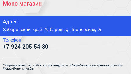 Mono, магазин по адресу Хабаровский край, Хабаровск, Пионерская, 2в в дальнейшем Организация, размещена в следующих категориях: