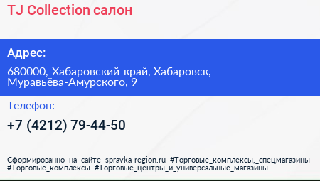 TJ Collection, салон по адресу 680000, Хабаровский край, Хабаровск, Муравьёва-Амурского, 9 в дальнейшем Организация, размещена в следующих категориях: