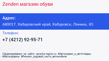 Zenden, магазин обуви по адресу 680017, Хабаровский край, Хабаровск, Ленина, 85 в дальнейшем Организация, размещена в следующих категориях: