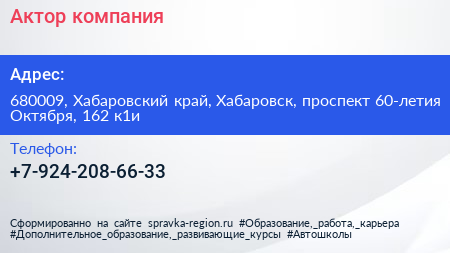 Актор, компания по адресу 680009, Хабаровский край, Хабаровск, проспект 60-летия Октября, 162 к1и в дальнейшем Организация, размещена в следующих категориях: