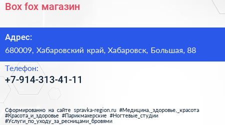 Box.fox, магазин по адресу 680009, Хабаровский край, Хабаровск, Большая, 88 в дальнейшем Организация, размещена в следующих категориях: