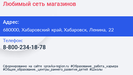 Любимый, сеть магазинов по адресу 680000, Хабаровский край, Хабаровск, Ленина, 22 в дальнейшем Организация, размещена в следующих категориях: