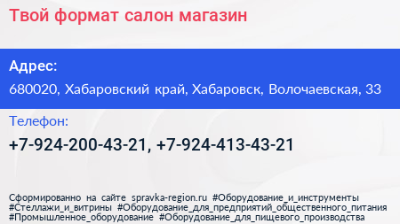 Твой формат, салон-магазин по адресу 680020, Хабаровский край, Хабаровск, Волочаевская, 33 в дальнейшем Организация, размещена в следующих категориях: