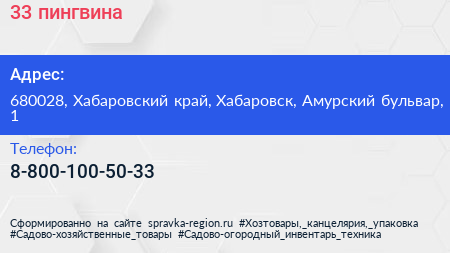 33 пингвина по адресу 680028, Хабаровский край, Хабаровск, Амурский бульвар, 1 в дальнейшем Организация, размещена в следующих категориях: