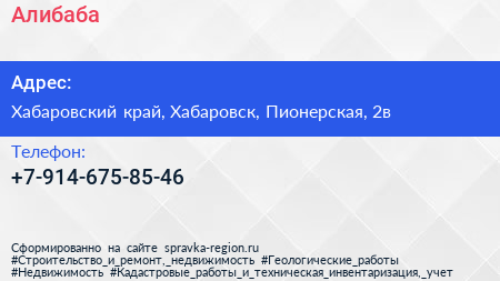 Алибаба по адресу Хабаровский край, Хабаровск, Пионерская, 2в в дальнейшем Организация, размещена в следующих категориях: