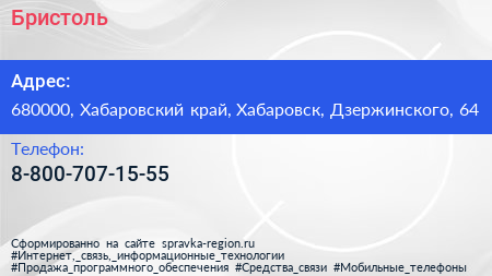 Бристоль по адресу 680000, Хабаровский край, Хабаровск, Дзержинского, 64 в дальнейшем Организация, размещена в следующих категориях: