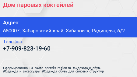 Дом паровых коктейлей по адресу 680007, Хабаровский край, Хабаровск, Радищева, 6/2 в дальнейшем Организация, размещена в следующих категориях: