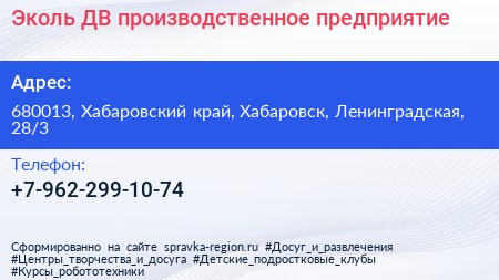 Эколь-ДВ, производственное предприятие по адресу 680013, Хабаровский край, Хабаровск, Ленинградская, 28/3 в дальнейшем Организация, размещена в следующих категориях: