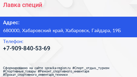 Лавка специй по адресу 680000, Хабаровский край, Хабаровск, Гайдара, 19Б в дальнейшем Организация, размещена в следующих категориях: