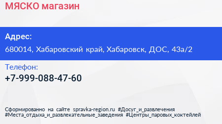 МЯСКО, магазин по адресу 680014, Хабаровский край, Хабаровск, ДОС, 43а/2 в дальнейшем Организация, размещена в следующих категориях:
