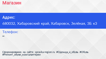 Магазин по адресу 680032, Хабаровский край, Хабаровск, Зелёная, 3Б к3 в дальнейшем Организация, размещена в следующих категориях: