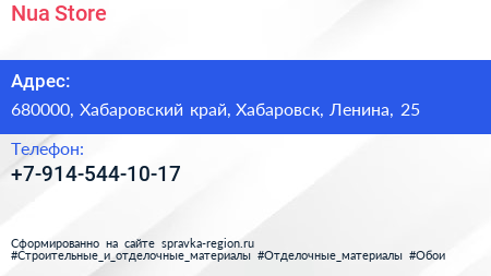 Nua Store по адресу 680000, Хабаровский край, Хабаровск, Ленина, 25 в дальнейшем Организация, размещена в следующих категориях:
