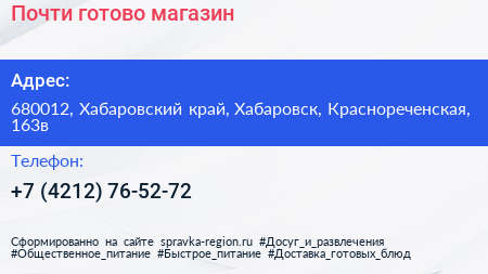 Почти готово, магазин по адресу 680012, Хабаровский край, Хабаровск, Краснореченская, 163в в дальнейшем Организация, размещена в следующих категориях: