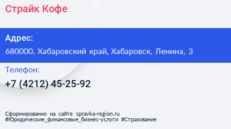 Страйк & Кофе по адресу 680000, Хабаровский край, Хабаровск, Ленина, 3 в дальнейшем Организация, размещена в следующих категориях: