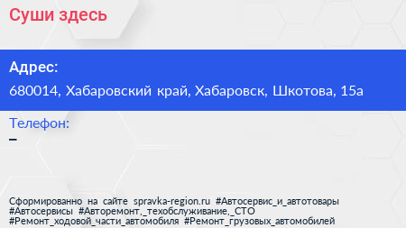 Адрес: Хабаровский край, Хабаровск, Шкотова, 4/1