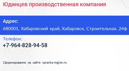 Юдинцев, производственная компания по адресу 680001, Хабаровский край, Хабаровск, Строительная, 24ф в дальнейшем Организация, размещена в следующих категориях: