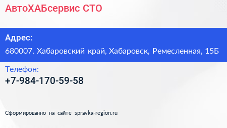 АвтоХАБсервис, СТО по адресу 680007, Хабаровский край, Хабаровск, Ремесленная, 15Б в дальнейшем Организация, размещена в следующих категориях: