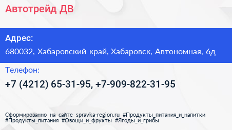 Автотрейд ДВ по адресу 680032, Хабаровский край, Хабаровск, Автономная, 6д в дальнейшем Организация, размещена в следующих категориях: