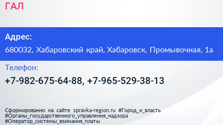 ГАЛ по адресу 680032, Хабаровский край, Хабаровск, Промывочная, 1а в дальнейшем Организация, размещена в следующих категориях: