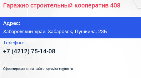 Гаражно-строительный кооператив №408 по адресу Хабаровский край, Хабаровск, Пушкина, 23Б в дальнейшем Организация, размещена в следующих категориях: